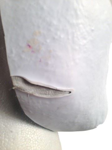 Screen worn, stunt, "The Executioner" vacuform mask. This is a sfx resin mask. Pure white, no mouth, with a nose and eye holes. Small gash on right side at bottom of the jaw.(10x7)