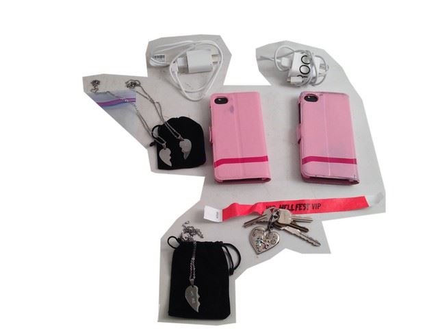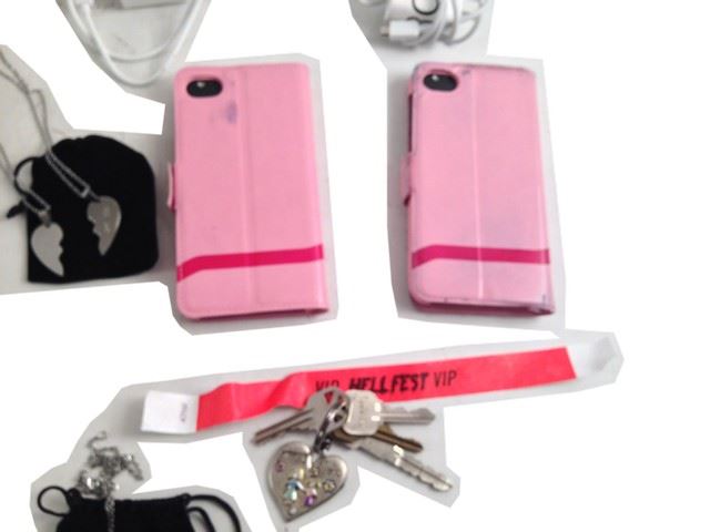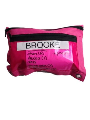 Brooke (Reign Edwards) screen used, hero, pink zip lock canvas bag that has 1 vip bracelet and1 set of keys with a heart keychain.(10x7)