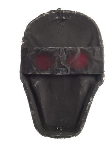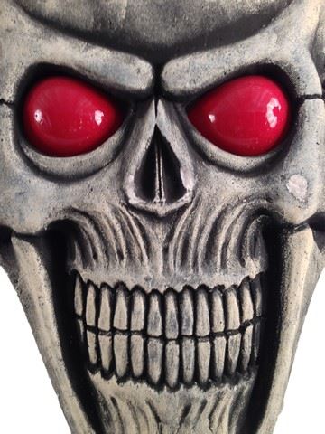 Screen used, giant Styrofoam skull, black, white and red, battery operated eyes light up, this is for hanging as a decoration.(31x19)