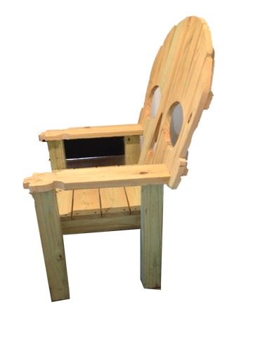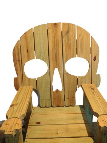 Screen used skeleton cut out lounge chair used for set decoration in the film. Made of wood with a skeleton face carved out from the back of the chair and on the ends of the arm rests. (4ftx3ftx27inches).