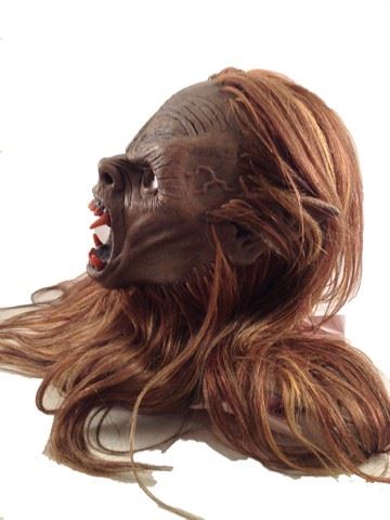 Werewolf screen worn, sfx latex mask. Brown and black with orange protrusive teeth. Full head of hair and a giant open mouth.(15x13)