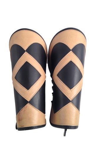 Screen worn "Strong man" costume - Tiger print top attached to cheetah print shorts with brown sandals and leather wrist bands. Custom made for the film.