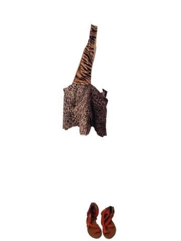 Screen worn "Strong man" costume - Tiger print top attached to cheetah print shorts with brown sandals and leather wrist bands. Custom made for the film.