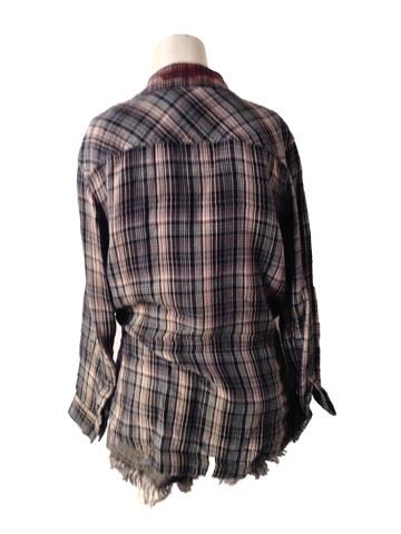 Taylor (Bex Taylor-Klaus) screen worn, stunt, two toned grey "Revive" t-shirt with cut out sleeves and v-neck(sm), black and cream "Melrose and Market" flannel(xs), grey cut off "Free People" shorts with button up fly(27). Flannel has been soiled with blood from the neck wound in scene 80. Worn in multiple scenes.