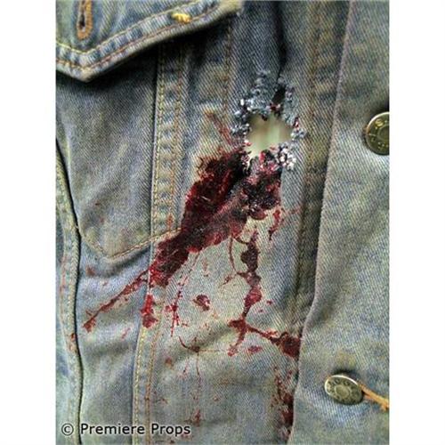 Hell Ride - Direct from the set, this is a screen worn 666 blue jean jacket with cut off sleeves! The jacket includes a bullet hole with a blood stain around the hole under the right front pocket. On the back there is a yellow devil patch, with a 666 patch on the top and Valle de Sangre patch on the bottom. (HLR1039)