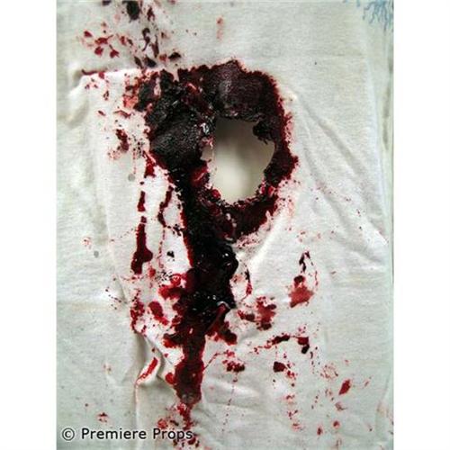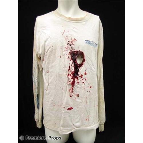 Hell Ride - Direct from the set of the biker gang film, this is a screen worn white long sleeve shirt, with a blood stained bullet hole on the front and blood all around it. Size (L) The perfect bloody keepsake from the film! (HLR1059)