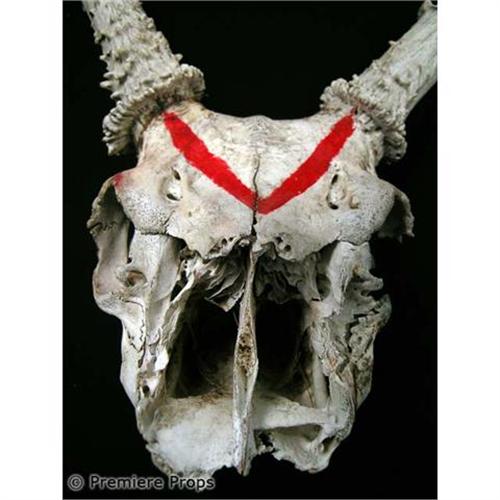 Hell Ride - Direct from the set of Hell Ride, this is a screen used dear skull and antlers with red painted lines on the top of the skull. A chilling hero prop that is 20" x 22." (HLR2016)