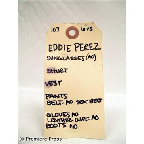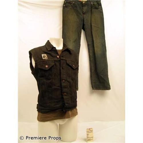 Hell Ride - Direct from the set of the biker gang film, this is a costume screen worn by Eddie Perez. Includes 666 black jean jacket with cut off sleeves, yellow devil patch and Valle de Sangre patch (L), black skull bandana, brown under shirt (L), and blue jeans. (32-32) This complete costume was made to look dirty by the studio. Includes wardrobe tag! Don't hesitate to add this key item to your movie memorabilia collection! (HLR1021)