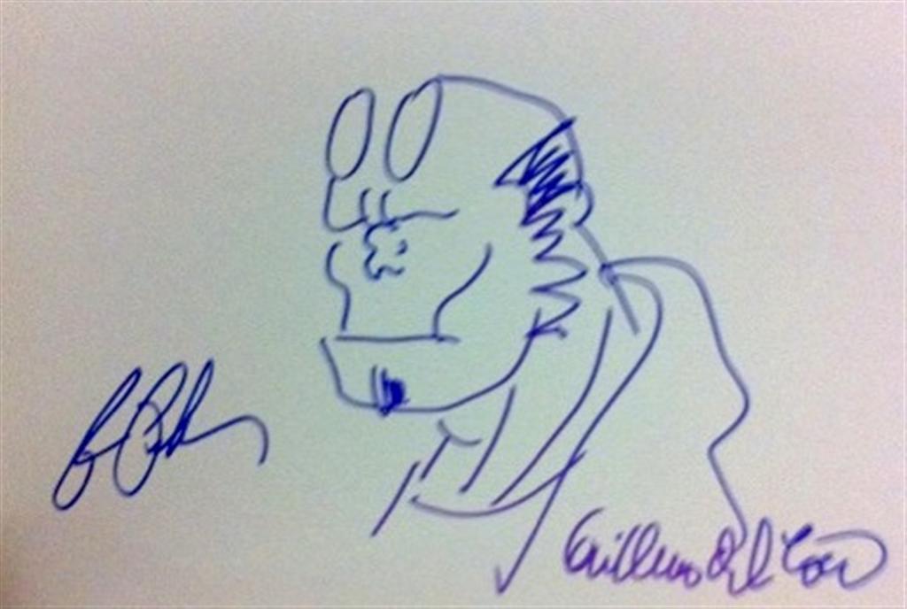 Hellboy (2004) - An original autographed hand drawing of Hellboy by director Guilermo Del Toro and also signed by Ron Perlman. 11" x 14"
