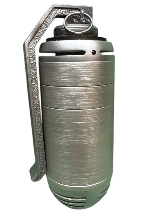 High end metal replica grenade from the Guillermo del Toro directed superhero film 'Hellboy' (2004), where a charismatic demon-turned-investigator named "Hellboy" works with the secretive Bureau of Paranormal Research and Defense to suppress paranormal threats, when a resurrected sorcerer seeks to make Hellboy fulfill his destiny by triggering the apocalypse.