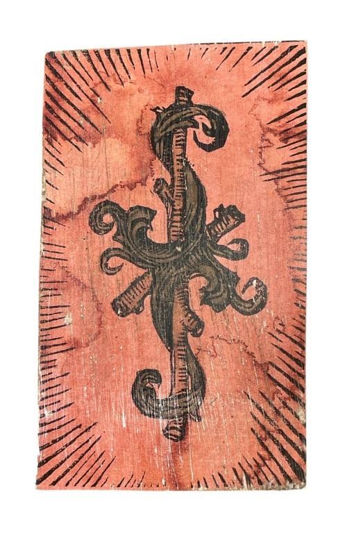 Original tarot card (Death Card) used in the production of theGuillermo del Toro directed superhero film 'Hellboy' (2004), where a charismatic demon-turned-investigator named "Hellboy" works with the secretive Bureau of Paranormal Research and Defense to suppress paranormal threats, when a resurrected sorcerer seeks to make Hellboy fulfill his destiny by triggering the apocalypse.