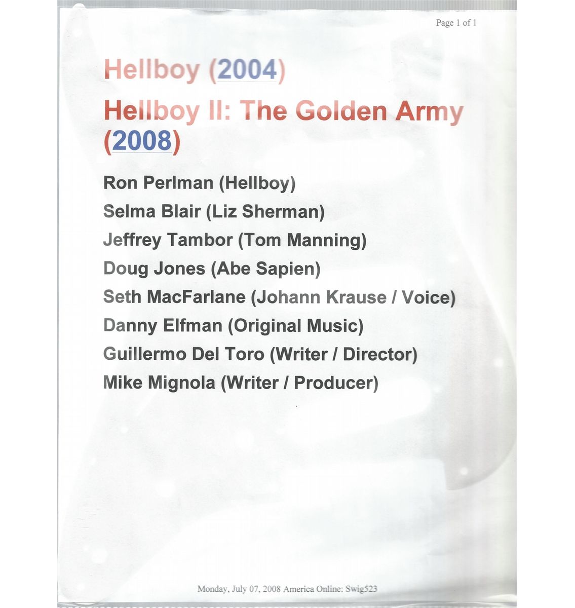 Cast signed Fender guitar pick guard – one of a kind! Signed on the pickguard by Ron Perlman, Selma Blair, Jeffrey Tambor, Doug Jones, Seth MacFarlane, Danny Elfman, Guillermo Del Toro, Mike Mignola