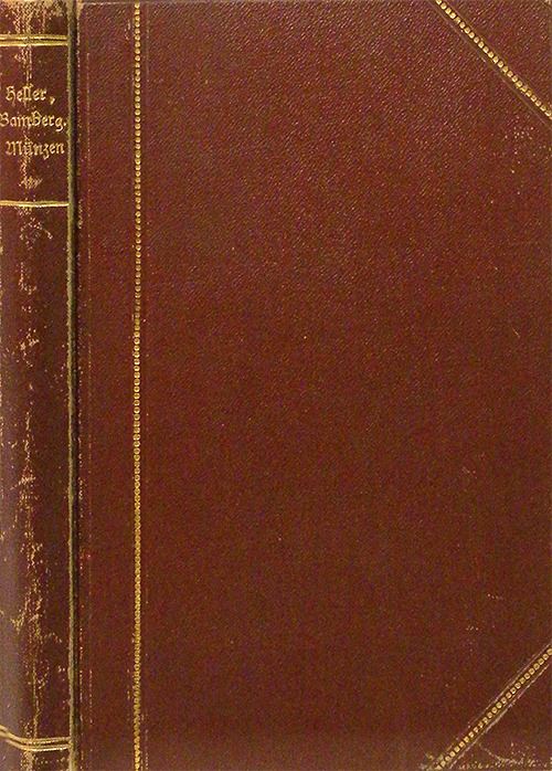 Heller, Joseph. DIE BAMBERGISCHEN MÜNZEN, CHRONOLOGISCH GEORDNET UND BESCHREIBEN. Bamberg: Verlag von J.G. Sickmüller, 1839. 12mo, somewhat later brown cloth, gilt. xviii, 139 pages; frontispiece size scale; text engravings of coats of arms. A bit browned, but still near fine. Still useful and very rare: the first copy of the original we’ve offered since 1989. Clain-Stefanelli 6605. Leitzmann 55.