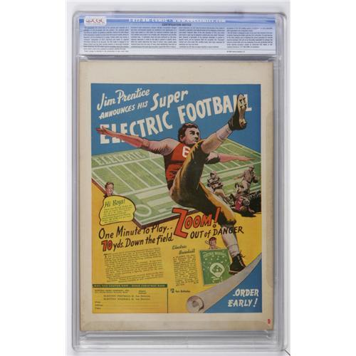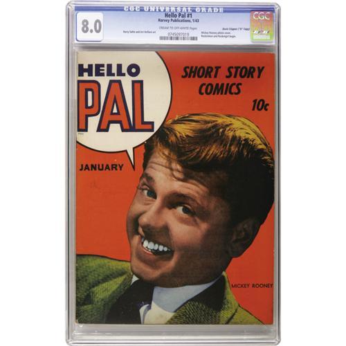 Yes, that's Mickey Rooney on the cover, and while a star pic on the cover often meant non-fiction inside, this series was actually an all-comics affair. Oddly enough, while this was published by Family Comics (aka Harvey), inside there's a story featuring Rocketman and Rocketgirl, whom we know from Chesler's <B>Scoop Comics</B></I>. Overstreet 2006 VF 8.0 value = $438. CGC census 11/06: 2 in 8.0, none higher. <I>From the Crippen Collection.</B></I><BR><BR><b>Shipping:</b> Slabbed Comic (<a target="_blank" href="http://www.heritageauctions.com/common/shipping.php">view shipping information</a>)