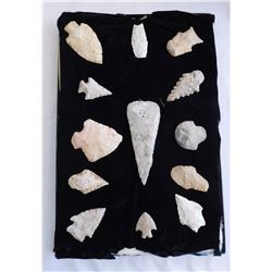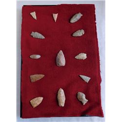 Illinois Flint Collection, pre-historic items. Made of chert, the items measure from 1" to 2" long. Adams County, Illinois. Frame not incl...