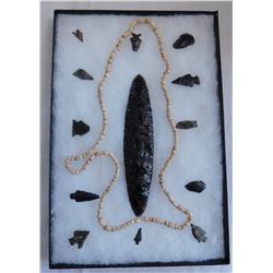 California Artifact Collection, pre-historic items. Made of obsidian, the items measure from 1.25" to 6" long. Central California. Frame n...