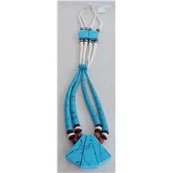 Santo Domingo Necklace, 20th century item. Made of turquoise, shell and possibly coral, the item measures 14" as worn around the neck. Santo Do...