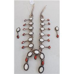 Squash Blossom Necklace w/Earrings, c. 1960s. Made of sterling silver, mother of pearl and coral, the necklace hangs approx. 14" as worn, with ...