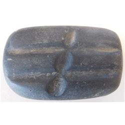3-Groove Arrowshaft Straightener, pre-historic item, made from steatite and measuring 3 1/2 x 2 1/4 x 1 1/4 inches. Item is rare with the three groov