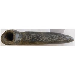 California Stone Tube Pipe, pre-historic item. Carved of steatite, item measures 4" x 1". Found in Fresno County, Calif. 2 sets of rings c...