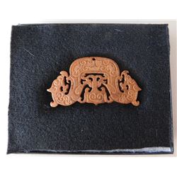 Chinese Jade Carving w/Dragon, Ming Dynasty. Item measures 3 x 2 x 1/2 inches. Previously of the Heritage of Americas Museum, El Cajon, Calif. Frame n