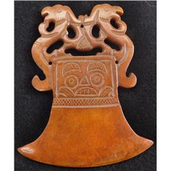 Chinese Jade Carving of Axe, approx. 500 B.C.E. Item measures 4 x 3 x 1/4 inches. Previously of the Heritage of the Americas Museum, El Cajon, Calif.