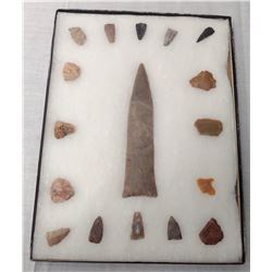 3 Frames of Ohio Flint, Hopewell period items. Made of chert and flint, the longest item measures 3 1/2". Ross County, Ohio. Frames included. C...