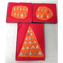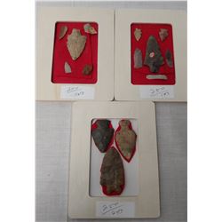 3 Frames of Texas Bird Points, age unknown. Made of chert, the longest item measures 1 1/2" long. Bell County, Texas. Fancy serrated points. Fr...