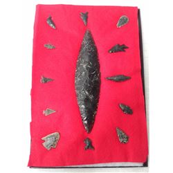 California Obsidian Collection, pre-historic items. Made of obsidian, the longest measures 3 1/2". Lake County, California. Many paleo points, ...