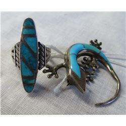 Silver & Stone Earrings, c. 1960s. Made of silver alloy and various inlaid stones, the items each measure 1" x 1 1/8". Southwest USA. ...