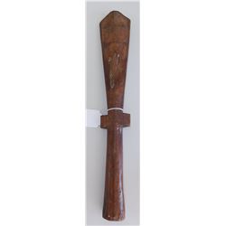 Polynesian Club, circa 1870s. Made of hardwood, this club measures 3.75" x 1" x 16.5" long. Tonga. Appears to be stone carved. Condit...