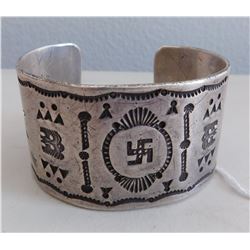 Navajo Cuff, circa 1940s. Made of sterling silver and measuring 2 1/2" x 2" x 1 3/8", with a 1" opening and an approx. 5.75"...