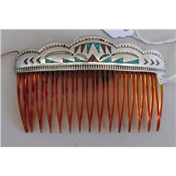 Navajo Comb, circa 1940s. Made of plastic and sterling silver with stone chip inlay, turquoise and coral, the item measures 3 3/8" x 2" x ...