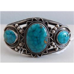 357 - Sterling Silver & Turquoise CuffHelm Auction, Inc.