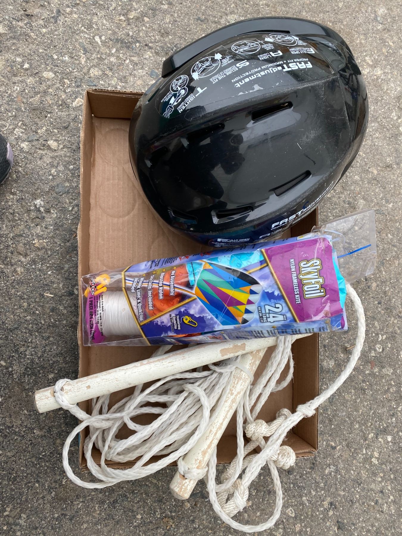 Helmet, rope and kite
