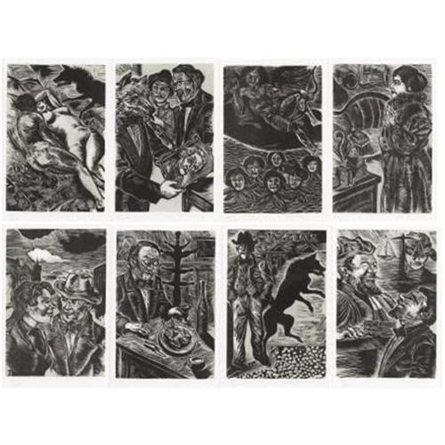 <B>Helmut Ackerman</B></I><BR>Eight limited edition prints representing Herman Hesse's<I> Steppenwolf</B></I><BR>Woodcuts on Tosho Japanese handmade paper<BR>17-1/2 x 12-1/2 inches (44.5 x 31.8 cm)<BR> <BR><BR><b>Shipping:</b> Requires 3rd Party Shipping (<a target="_blank" href="http://www.heritageauctions.com/common/shipping.php">view shipping information</a>)
