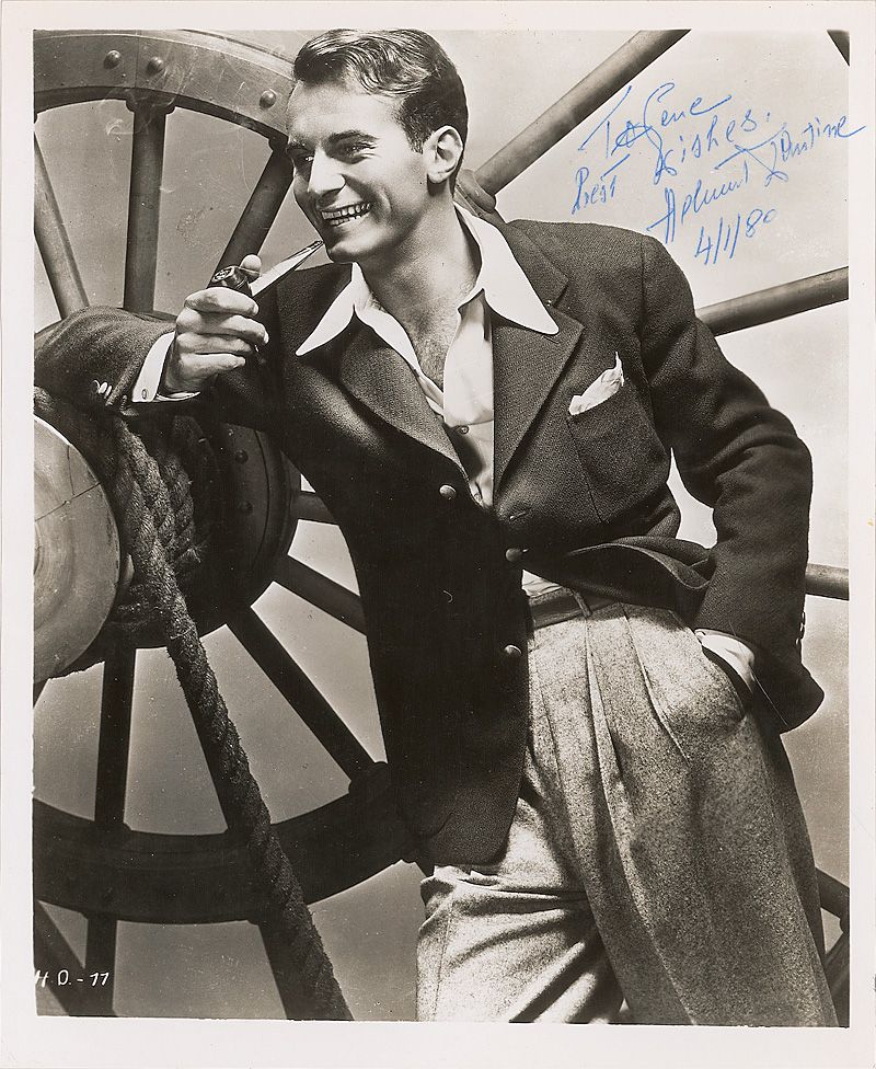 Actor (1917–1982) who had an uncredited part in Casablanca early in his career. Glossy 8 x 9.75 photo, signed and inscribed in blue ballpoint “To Gene, Best wishes, Helmut Dantine 4/1/80.” In fine condition, with a few light creases and some spotting to the finish.