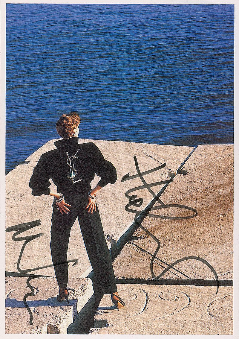 Two different postcards of Newton’s works, 4 x 5.75, each signed vertically in black felt tip or ballpoint. In overall fine condition.