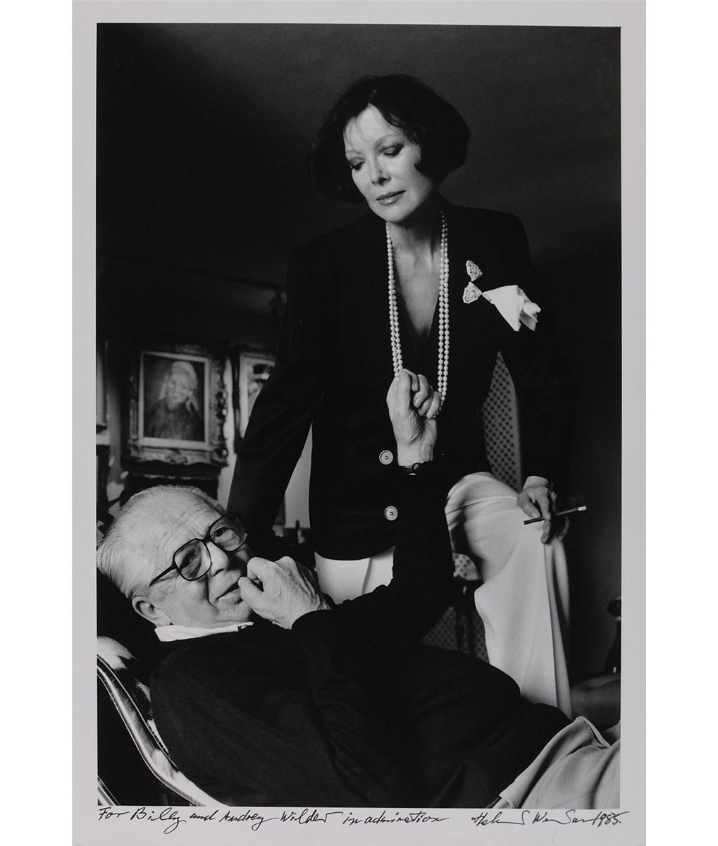 Semi-glossy 11 x 15.75 portrait of director Billy Wilder and his wife taken by Newton, signed and inscribed to the couple in the lower border in black ink, “For Billy and Audrey Wilder, in admiration, Helmut Newton, 1985.” Affixed to a same-size mount. In fine condition.