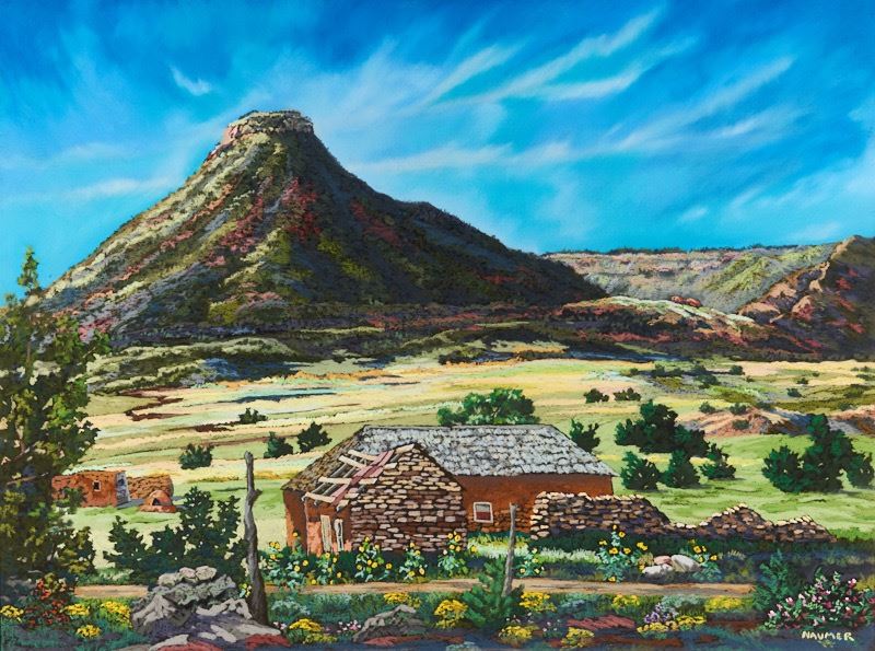 The pastel appears to be in very good condition. Under ultraviolet light there are no apparent signs of restoration. The work is behind glass and has not been inspected outside the frame. The frame is in good condition. The frame is carved gold with a linen liner. Verso: written on backing along the upper edge, Starvation Peak, New Mexico, Sept. 1965. Written at lower left, Artist Helmuth Naumer, San Sebastian Ranch, Santa Fe, New Mexico. Label: the Owings Gallery, Santa Fe, NM. Artist's biography taped to backing.