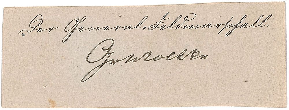 German Field Marshal (1800–1891) regarded as one of the great military strategists of the latter 19th century. Ink signature on an off-white 4 x 1.5 slip. In fine condition.