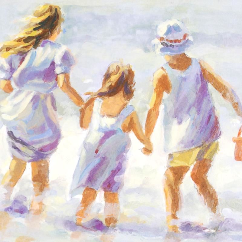 "Helping Hands" is a limited edition lithograph on paper, numbered and hand signed by Lucelle Raad! Measures approx. 8" x 6" (with border); 7" x 5" (image).