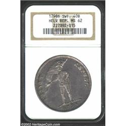 Helvetian Republic. 40 Batzen 1798S, KM4.2, MS62 NGC, pale violet and orange overtones. An always im
