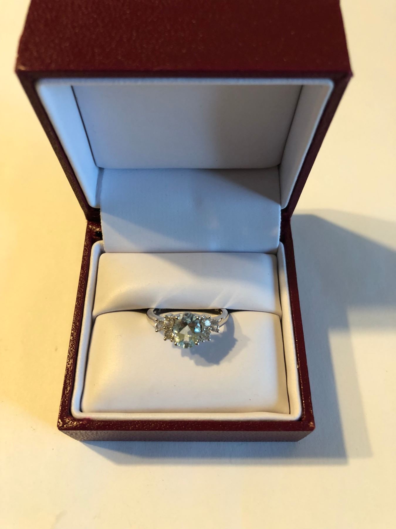 Helzberg Diamonds Aquamarine & Diamonds Sterling Silver Ring New in the Box Beautiful Classy Ring