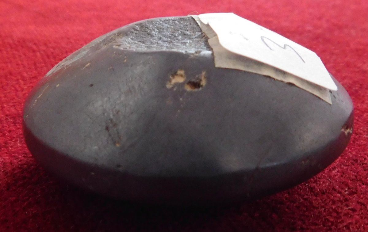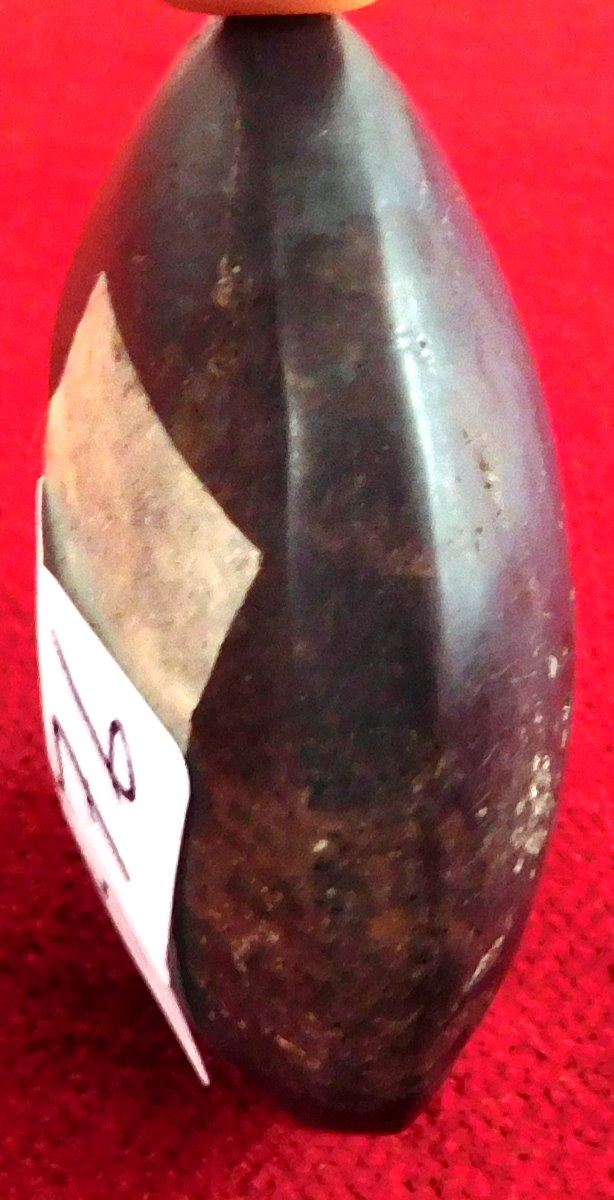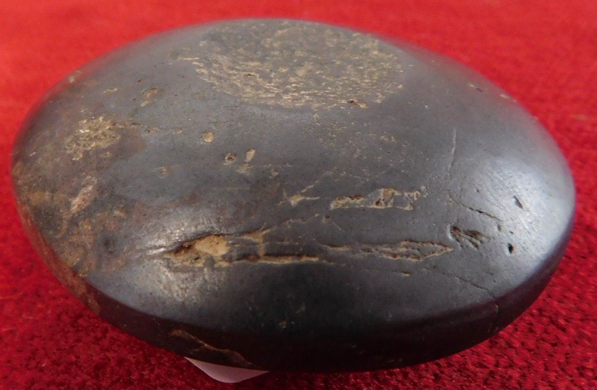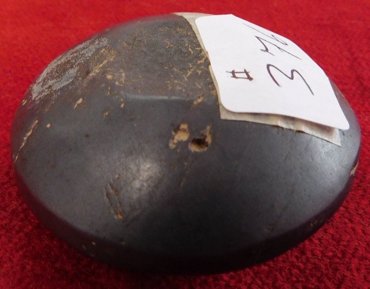 Hematite Discoidal w/Jackson COA, c. 2000 yrs B.P. Made of hematite, the item is 2 1/8" x 13/16". Missouri, Illinois-type discoidal. Rare, polished hematite discoidal of investment quality. Condition: Grade 9, see images. Shipping: $16.50 w/insurance and signature.