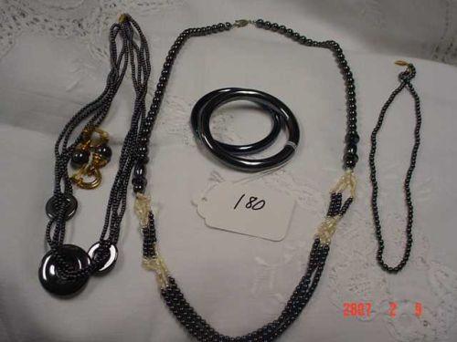 Hematite necklace with pearls, Two (2) necklaces & Two (2) bracelets, gold clip