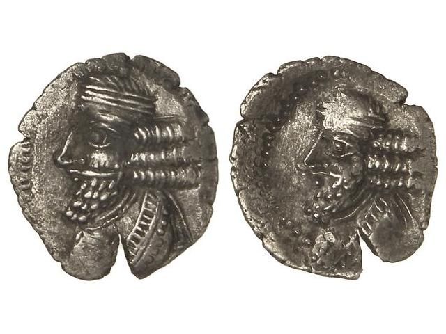 Hemidracma. PAKUR. PERSIS. Anv.: Busto laureado a izquierda. Rev.: Busto del rey a izquierda. 1,70 grs. AR. GIC-5945. MBC+.