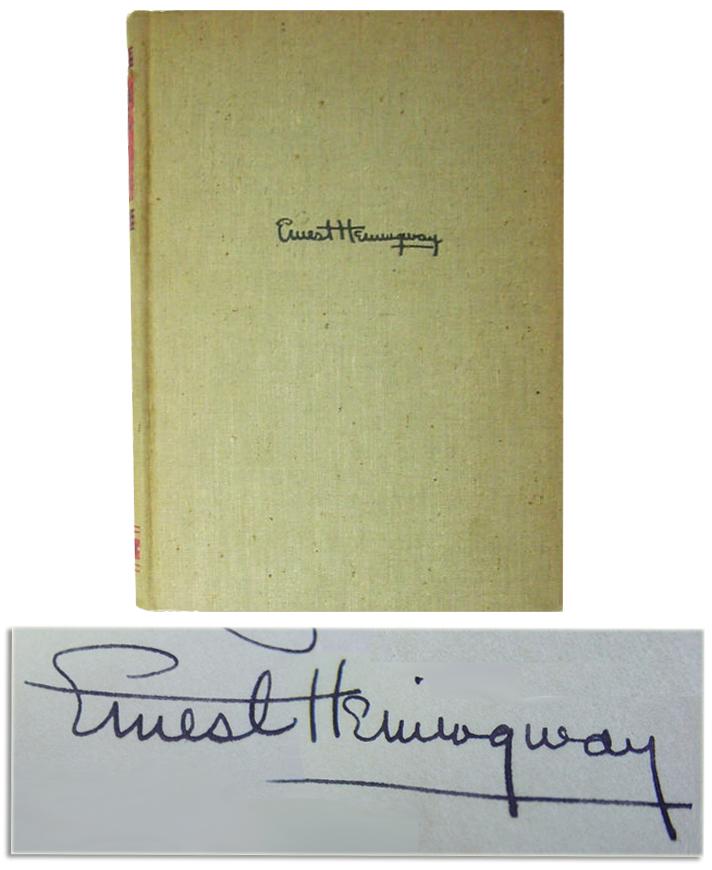 Ernest Hemingway signed first edition of ''For Whom the Bell Tolls.'' New York: Charles Scribner's Sons: 1940. First edition, first printing indicated by Scribner's A on copyright page. Hemingway signs and inscribes on the front free endpaper, ''To Dr. Nathan Ratnoff / with sincere good wishes / Ernest Hemingway''. Considered one of the finest novels of the modern movement, Hemingway's work mulls the impact of our lives and deaths upon each other. The ultimate answer seems to lie in the title, taken from John Donne's ''Meditation'': ''No man is an island, entire of itself; every man is a piece of the continent, a part of the main. If a clod be washed away by the sea, Europe is the less, as well as if a promontory were, as well as if a manor of thy friend's or of thine own were: any man's death diminishes me, because I am involved in mankind, and therefore never send to know for whom the bell tolls; it tolls for thee.'' Book, lacking the dustjacket, is in very good condition with some foxing. Boards are uniformly toned with some soiling. Signature page is very bold with clear handwriting.