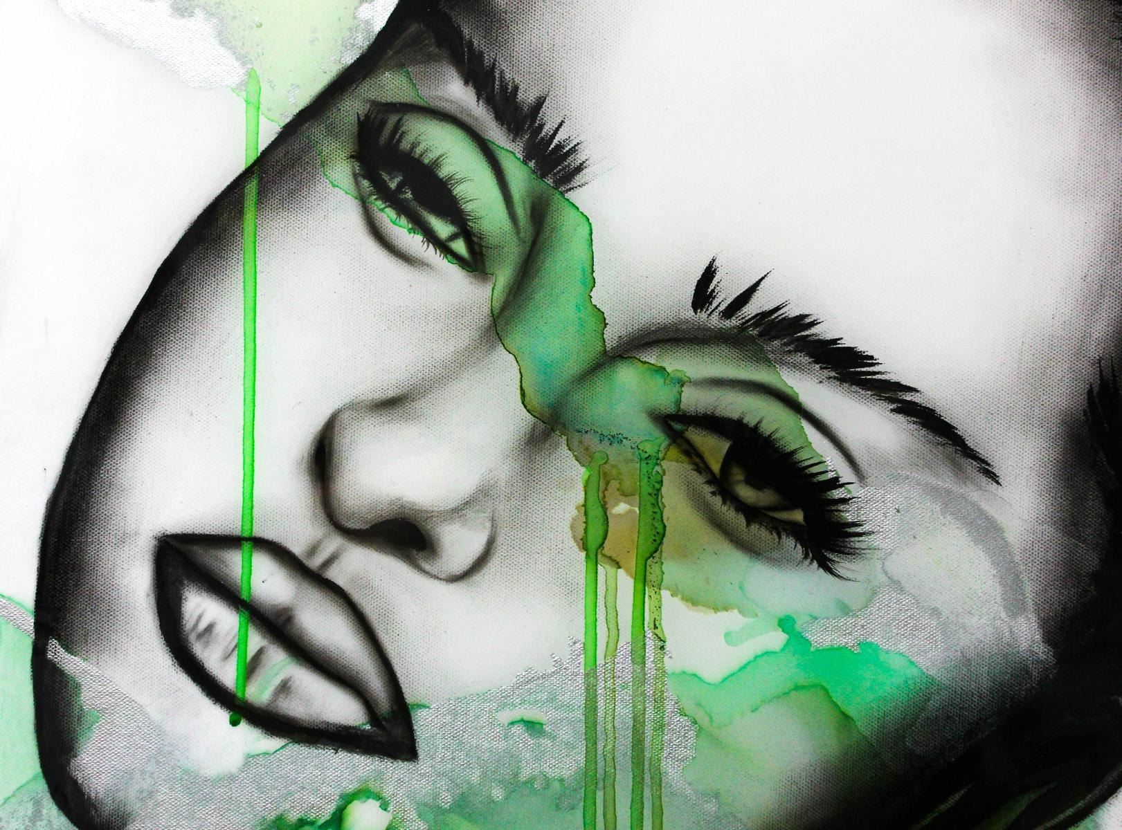 Artist: Hen Maman. Medium: Original Painting with Alcohol ink, acrylic, and epoxy rasin on Canvas. Title: Isabel. Size (Unframed): 27.5" x 20". Certificate of Authenticity: Is included. Additional: Stretched and ready to hang. Reference# 16315.