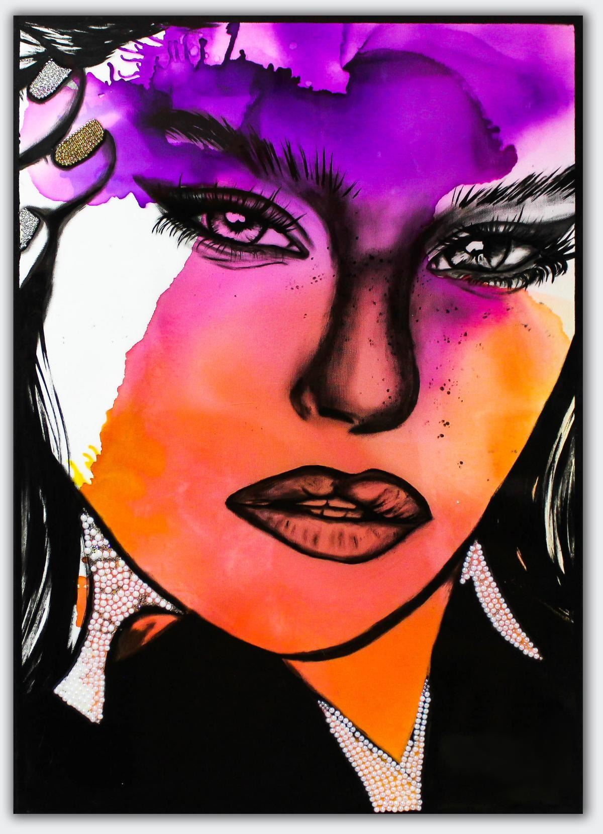 Artist: Hen Maman. Medium: Original Painting with Alcohol ink, acrylic, and epoxy rasin on Canvas. Title: Lital. Size (Unframed): 27.5" x 20". Certificate of Authenticity: Is included. Additional: Stretched and ready to hang. Reference# 15988.